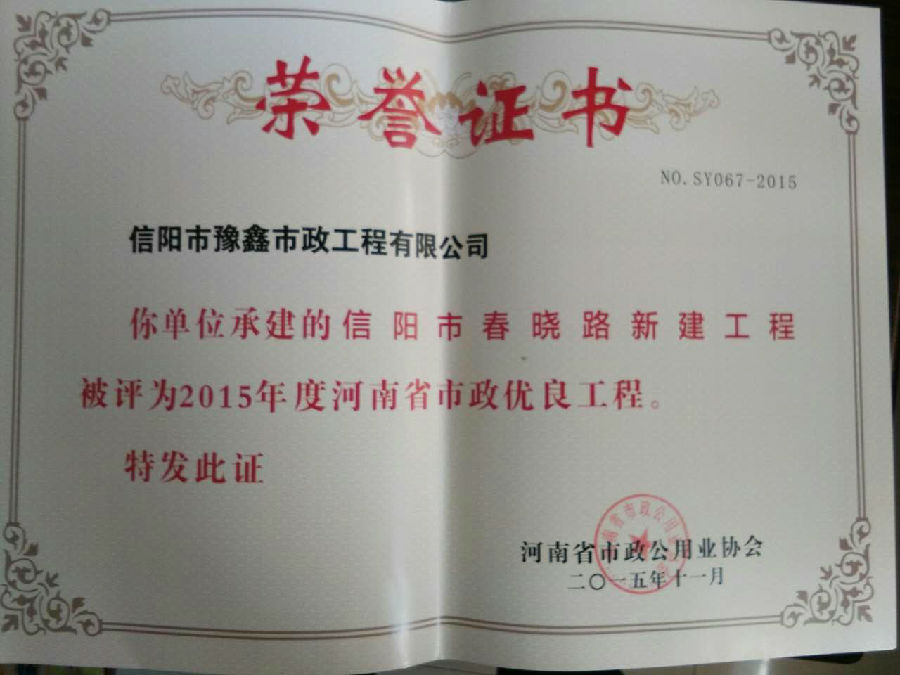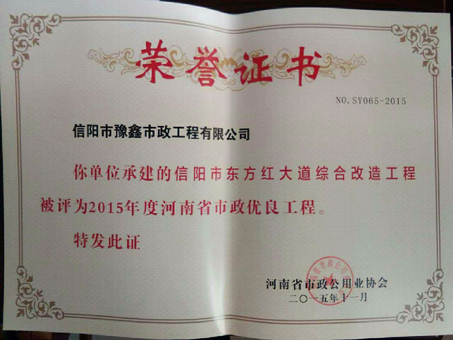 好風(fēng)憑借力,送我上青云。近年來(lái),公司積極參與城市市政基礎(chǔ)設(shè)施建設(shè)施工,積極參與市場(chǎng)競(jìng)爭(zhēng),先后承擔(dān)施工了市政府重點(diǎn)工程南京路道路改造工程、春曉路道路改造工程,東方紅大道道路改造工程、龍江東路新建工程等重點(diǎn)民生工程,其中南京路道路改造工程被省建設(shè)廳評(píng)為“中州杯”, 春曉路和東方紅大道道路改造工程被省建設(shè)廳評(píng)為“省優(yōu)工程”,成為城區(qū)一道道亮麗的風(fēng)景線。參與施工了市典范小區(qū)“臺(tái)北城上城”、“恒大名都”以及師范學(xué)院、職業(yè)技術(shù)學(xué)院、交警支隊(duì)和軍區(qū)道路工程,參與施工了雞公山管理區(qū)、南灣管理區(qū)、明港鎮(zhèn)和羅山縣等部分道路小區(qū)工程施工,累計(jì)大小各類施工工程三百余項(xiàng),企業(yè)影響力不斷擴(kuò)大、輻射力不斷增強(qiáng),市場(chǎng)份額不斷提高,企業(yè)信譽(yù)不斷彰顯,為信陽(yáng)城市建設(shè)做出了積極貢獻(xiàn),為企業(yè)的可持續(xù)發(fā)展插上了騰飛的翅膀。